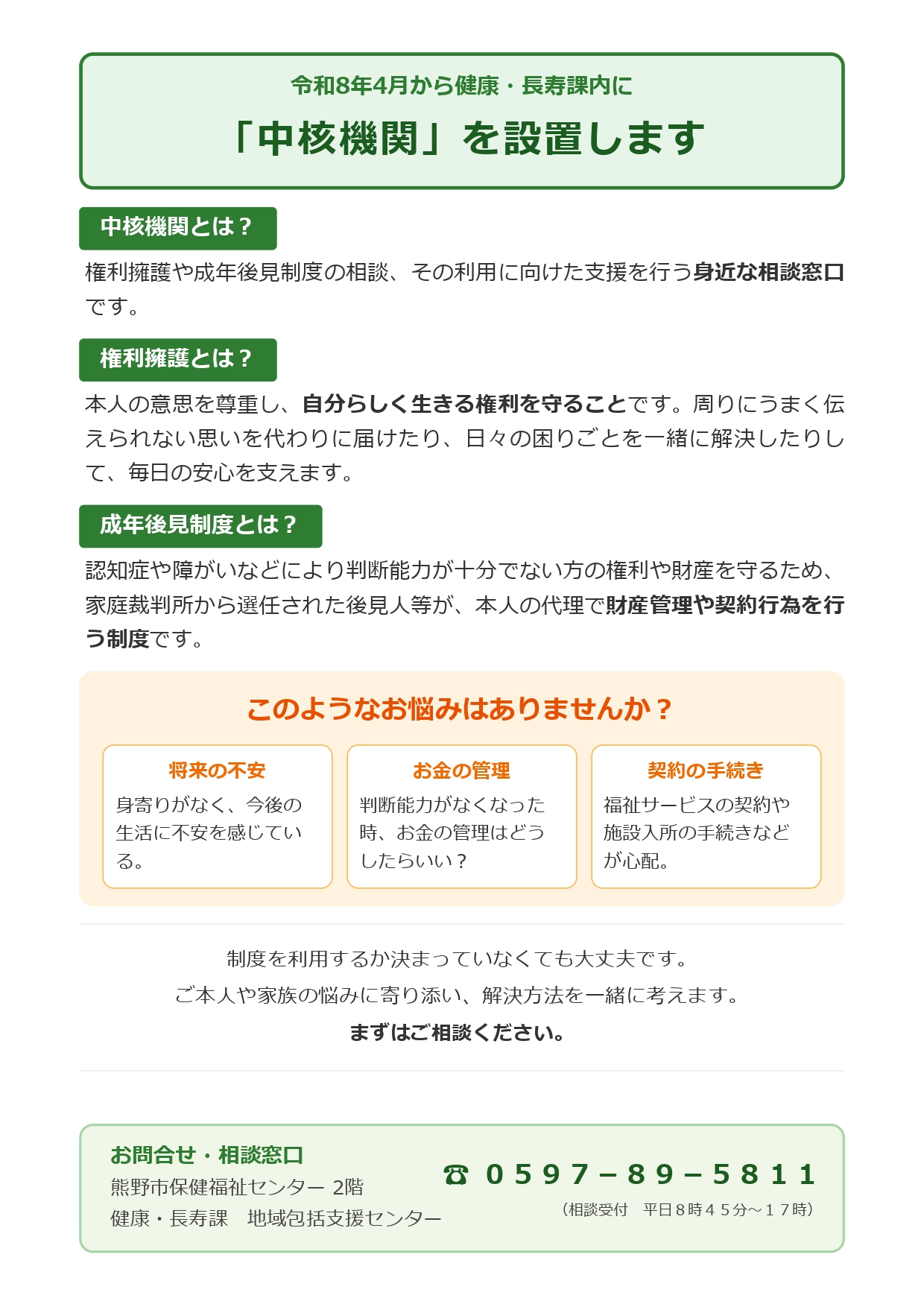 成年後見制度にかかる「中核機関」を設置します