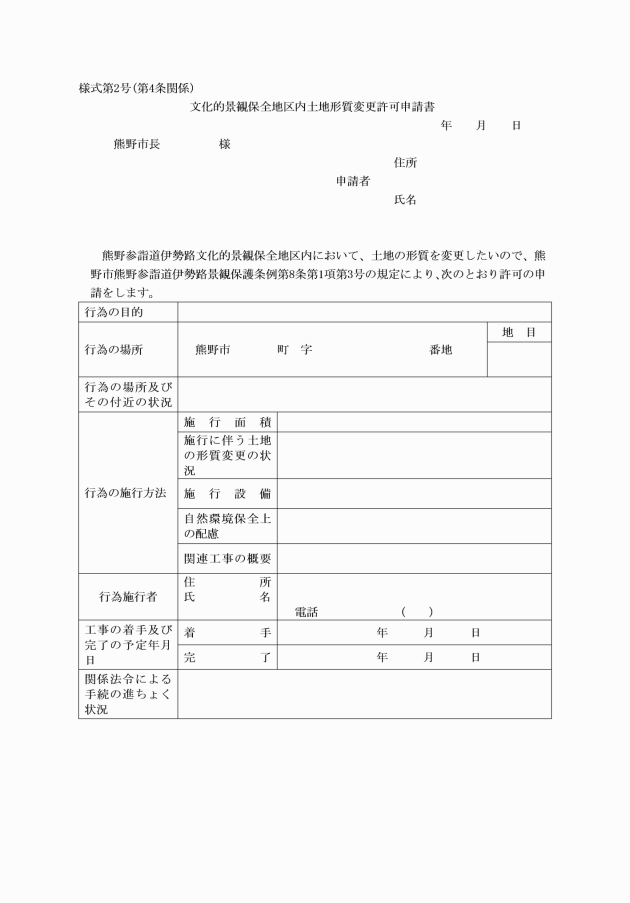 (2) 条例第8条第1項第3号の規定による許可申請 文化的景観保全地区内土地形質変更許可申請書(様式第2号)
