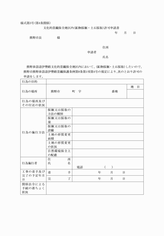 (3) 条例第8条第1項第4号の規定による許可申請 文化的景観保全地区内(鉱物採掘・土石採取)許可申請書(様式第3号)