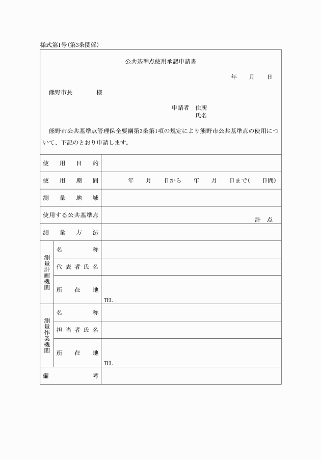 4 土地所有者等の都合により公共基準点を一時撤去又は移転する必要が生じた場合は、土地所有者等は、公共基準点(一時撤去・移転)請求書(様式第12号)を市長に提出するものとする。